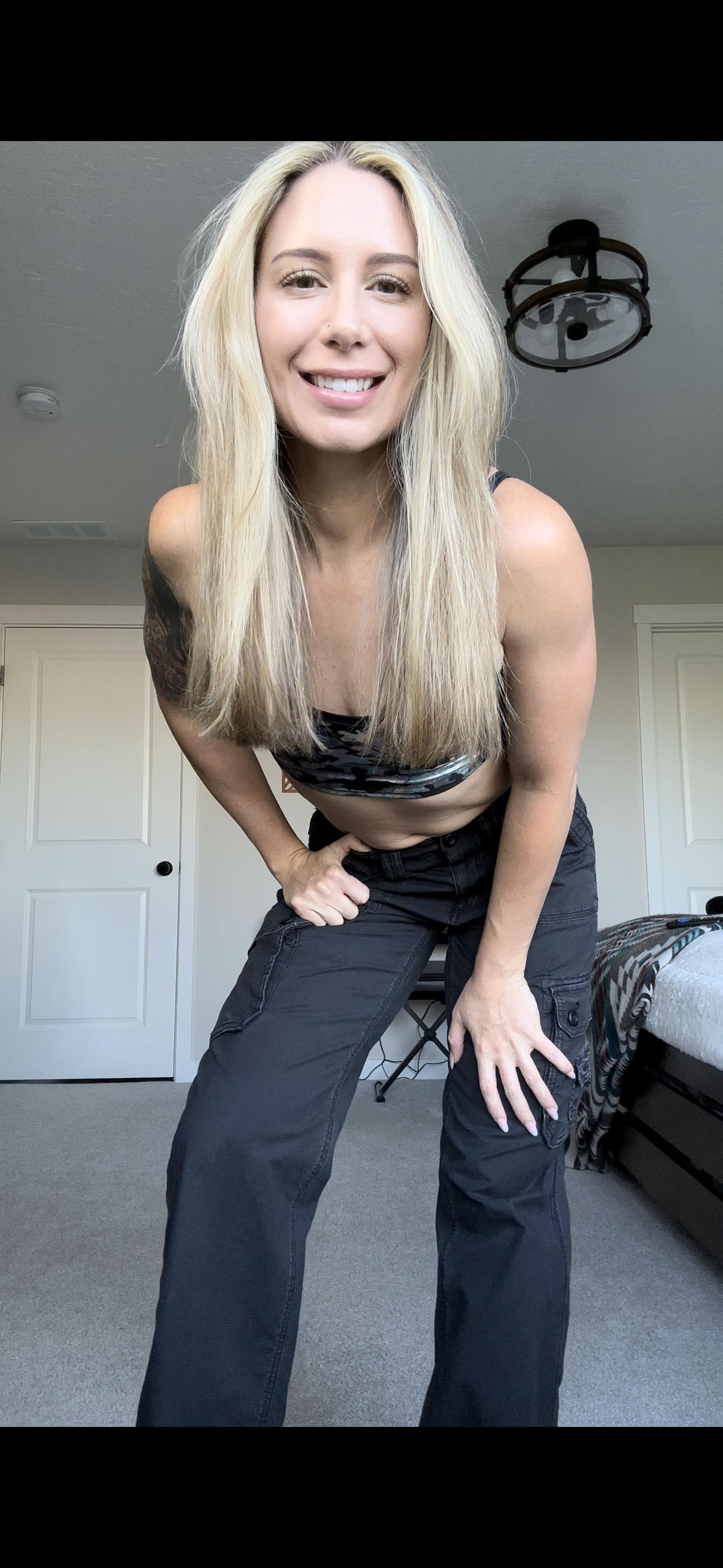 Lay on stomach away from cam